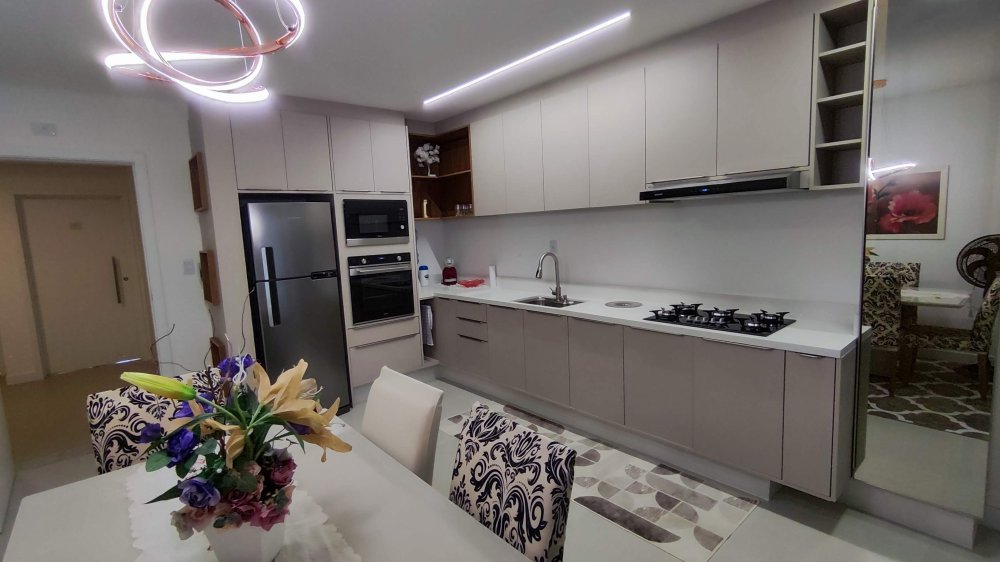 O APARTAMENTO é com 02 QUARTOS (01 suite) completos com ar condicionados, A SALA tem sofá, ar condicionado, internet Wi-Fi e TV smart; a COZINHA é completa com fogão, geladeira, micro-ondas, forno elétrico; ÁREA DE LAVANDERIA com maquila de lavar roupas; SACADA com churrasqueira, GARAGEM coberta e privativa para 02 veículos;