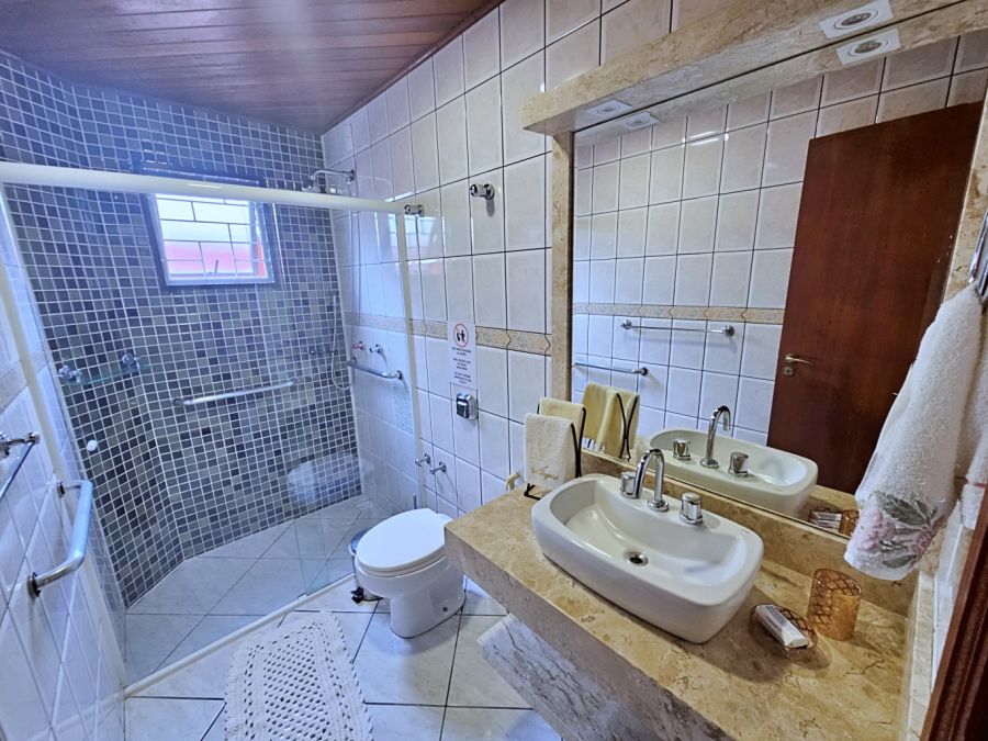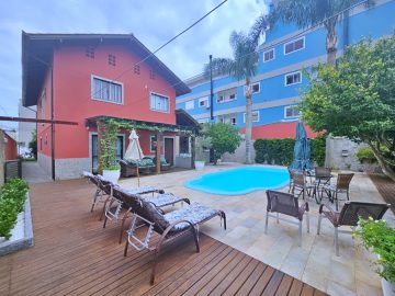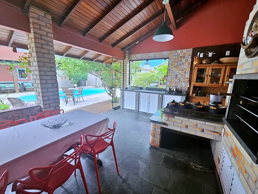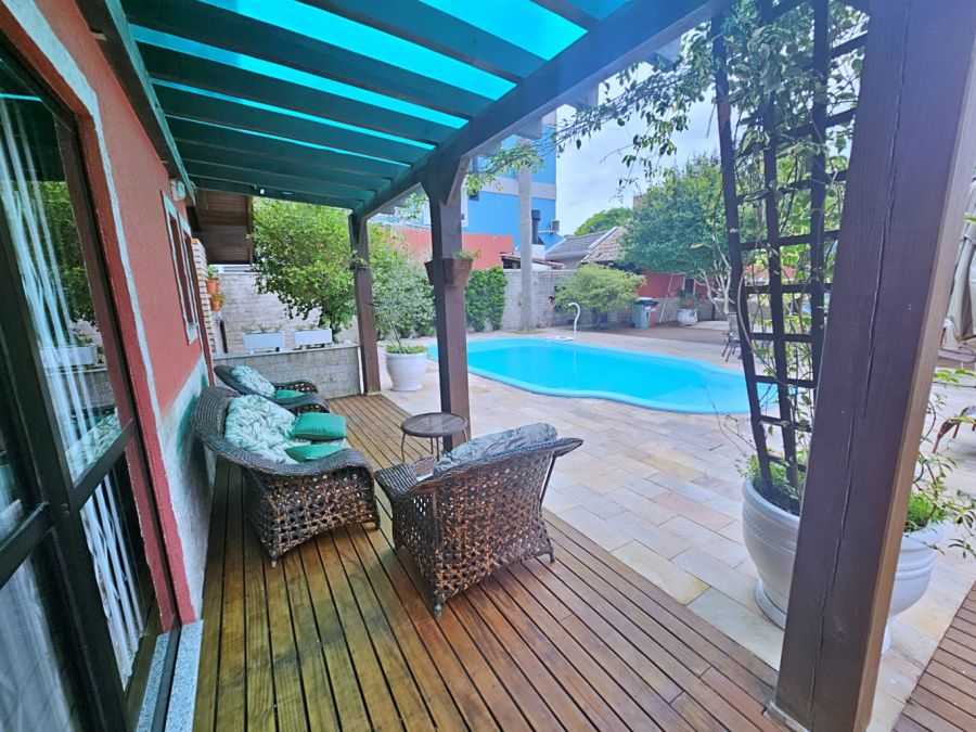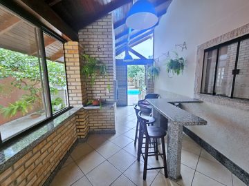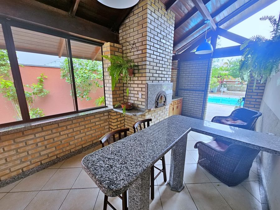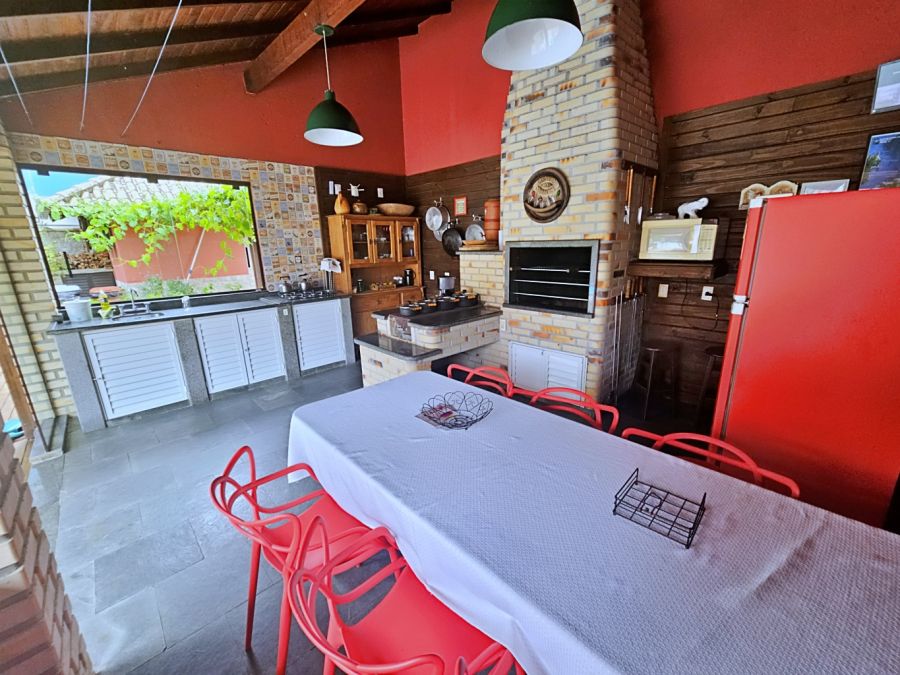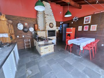 Aos fundos uma EDICULA com CHURRASQUEIRA, forno e fogão a lenha, banheiro, PISCINA e deck.