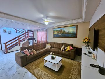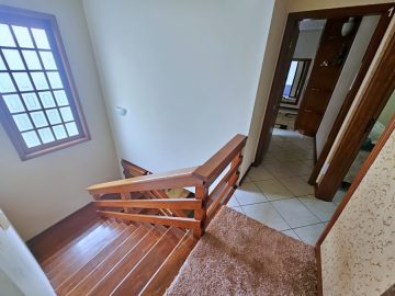 Com as seguintes caracteristicas: 04 DORMITÓRIOS (1 suite), banheiro social, SALA TV no primeiro pavimento; e no térreo, uma SALA DE ESTAR, banheiro social, cozinha montada, copa, despensa, área de serviços, área coberta com forno de pizza, varanda, garagens;